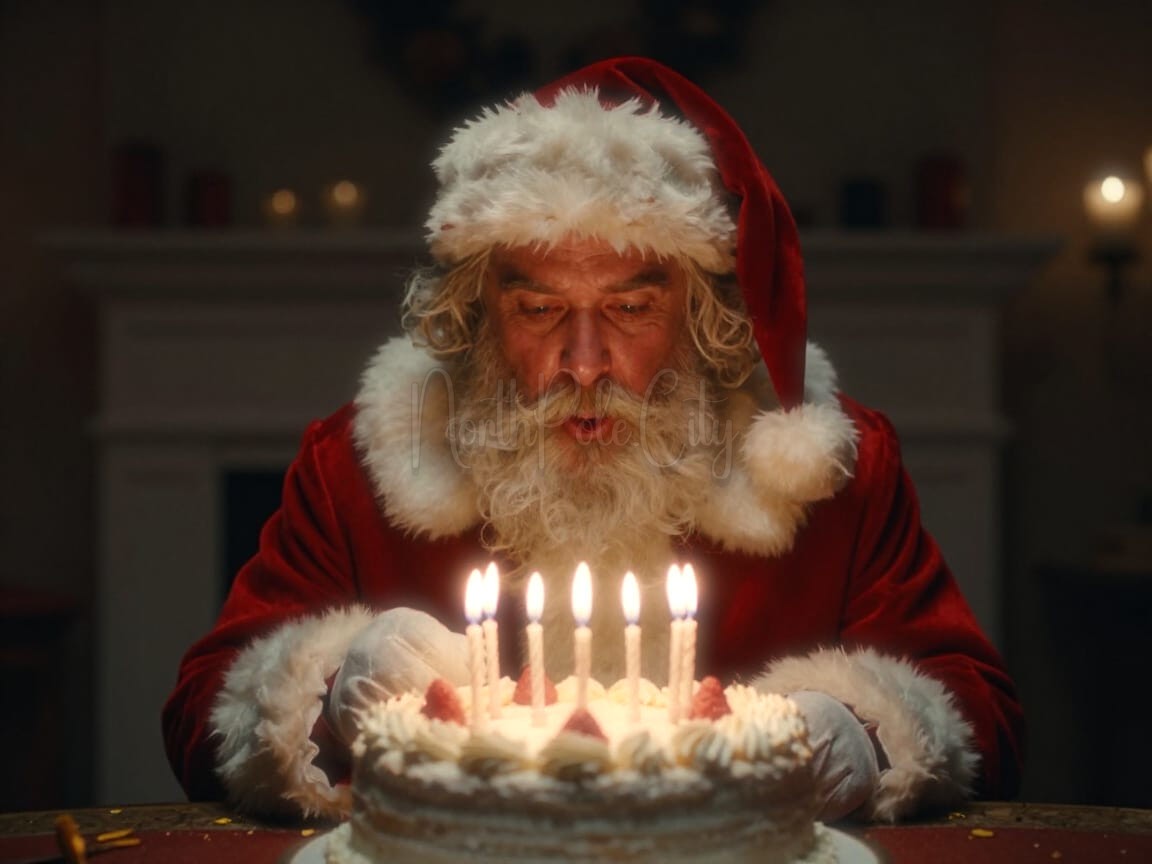 Santa Claus was born March 15, 270 AD. At 1,756 years of age, he doesn’t look a day over 70! Every year Mrs. Holly Claus works with the Elves to plan a surprise birthday party for Santa. Every time it happens at a different location within North Pole City. It’s no easy task to keep a secret from a Demi-Angel like Santa Claus. Although on his birthday his Angel half is temporarily suppressed for 24 hours so he becomes fully human. Thankfully, his human half is extremely superhuman just in case any emergencies arise! Naturally, he knows the surprise party will happen but where and when is the question.πŸŽ‚